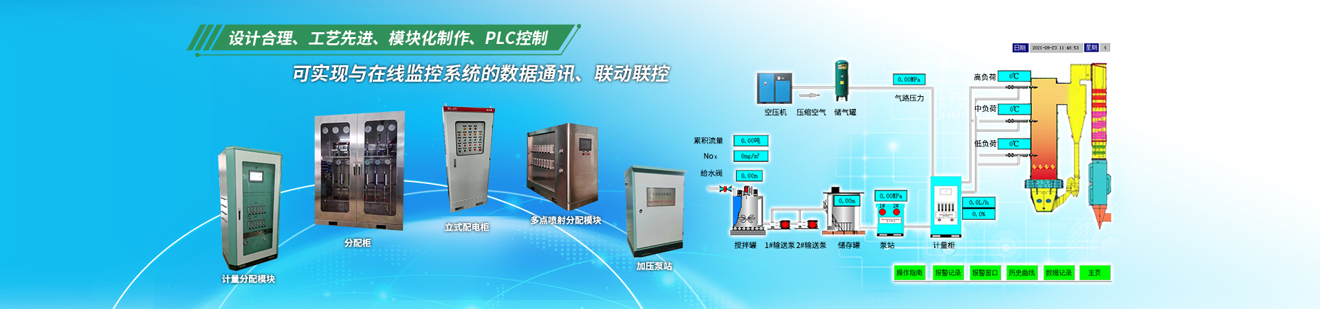 脫硝還原劑(尿素溶液/氨水)、稀釋用軟化水及壓縮空氣進入本模塊后,可根據NOx排放濃度反饋信息自動調節脫硝還原劑(尿素溶液/氨水)的噴射用量;稀…